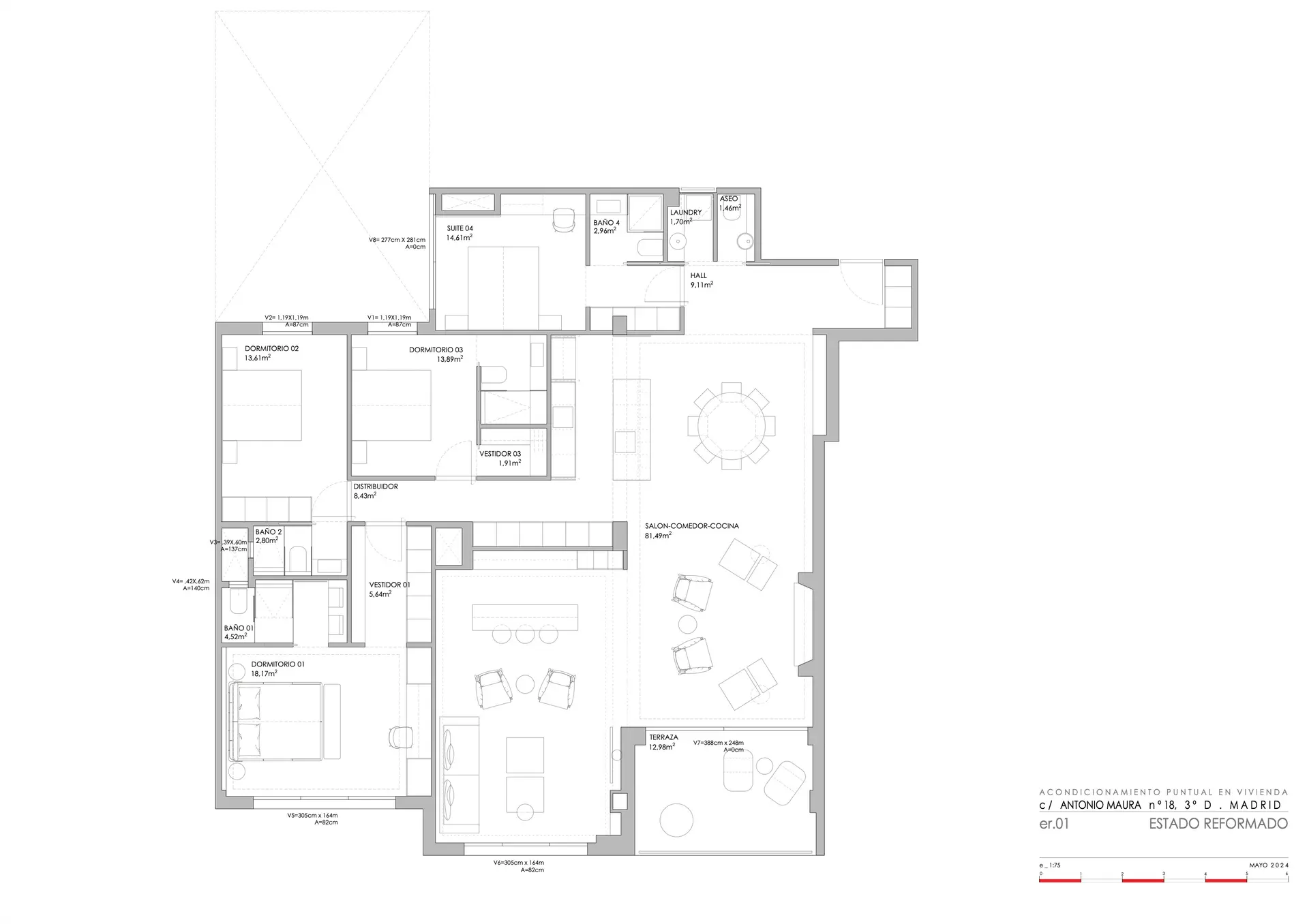 En un moderno edificio del emblemático barrio de Jerónimos, esta vivienda luminosa ocupa la tercera planta y cuenta con una agradable terraza que mira a la calle Méndez Núñez. Reformada y amueblada con un gusto impecable, ofrece una extensa zona social con cocina abierta y salón-comedor que se funden con el exterior. Un aseo de invitados y los dormitorios en suite brindan privacidad y comodidad a partes iguales. Su ubicación privilegiada permite disfrutar de un entorno tranquilo y elegante, a la vez que está a un paso de los lugares más icónicos de Madrid.