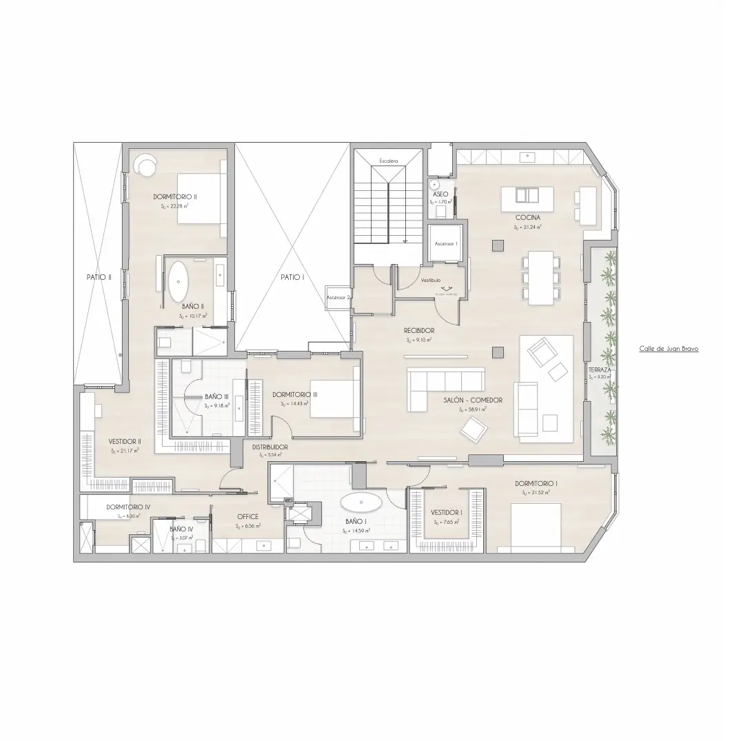 Ubicado en un edificio de los años 50, este piso se encuentra en una fase de reforma integral pensada para el comprador más exigente. La espaciosa distribución conecta el vestíbulo con un salón-comedor y cocina abierta, dando acceso a una terraza con vistas al bulevar de Juan Bravo, lleno de vida y restaurantes. El ambiente es luminoso y elegante, con detalles que aluden a su origen clásico, mientras la modernidad se refleja en cada acabado. Una oportunidad de estilo atemporal en plena zona de Salamanca.